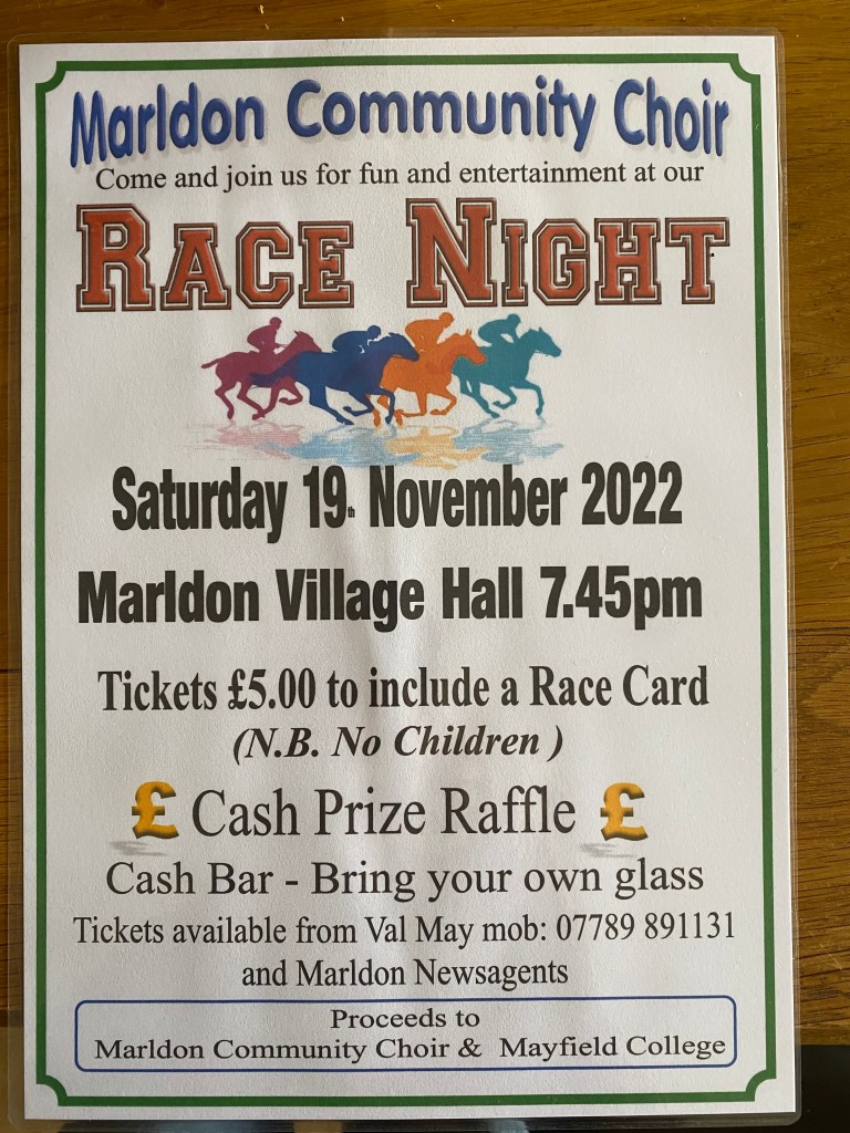 Proceeds will go to Mayfield College and for buying new music for Marldon Community Choir.