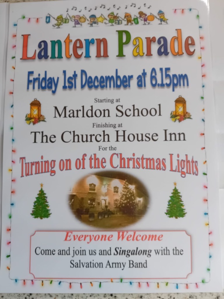 We will start at Marldon School at 6.15pm on Friday 1st December. Father Christmas will lead us through Marldon to the Church House Inn where we will join the Salvation Army Band to sing carols while the Christmas lights are turned on.