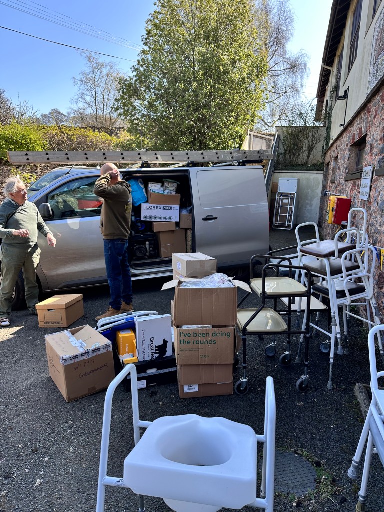 Thank you to the people of Marldon and beyond for supporting our collection for Ukraine this morning. For 2 hours people arrived with blankets, bandages, walking frames, wheelchairs and even 2 generators! Adam and his van had to make 2 trips to take it all, and it will all be going to Ukraine along with a message (in Ukrainian) from us as follows: